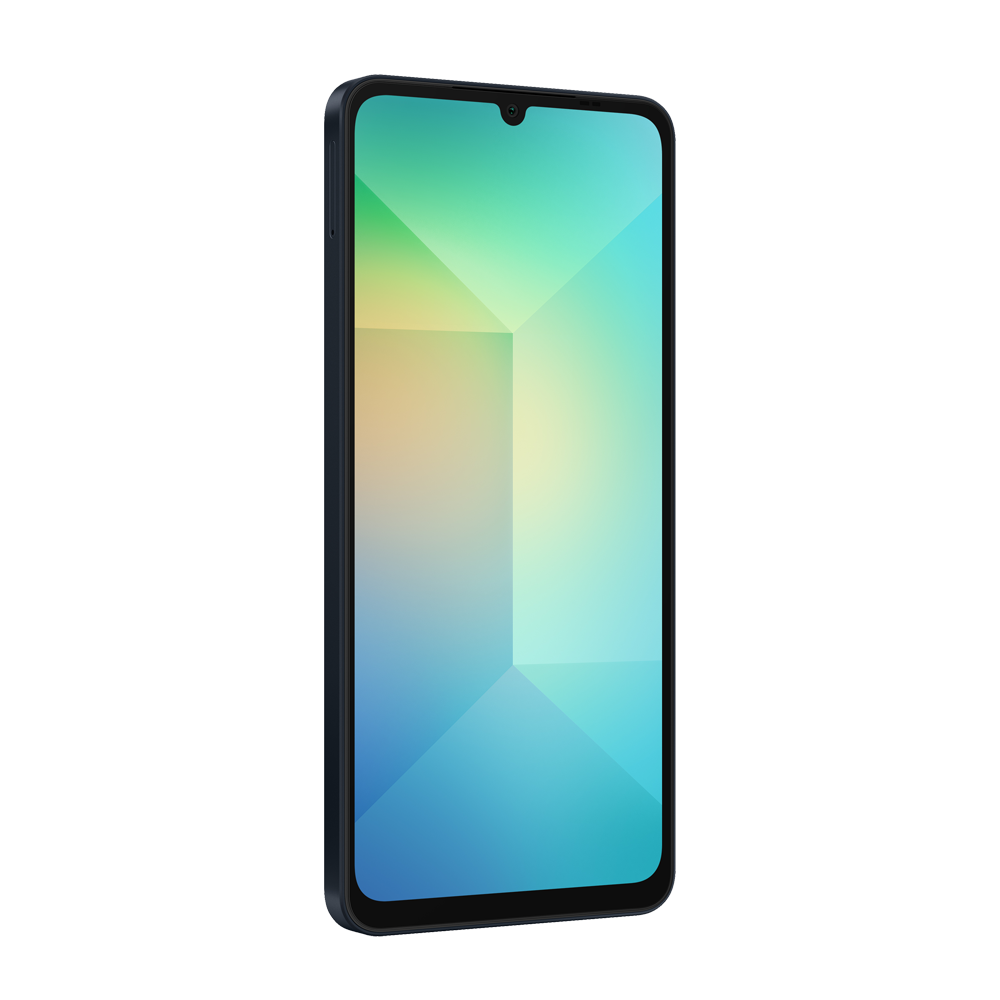 هاتف سامسونج A06 المتميز بشاشة كبيرة كاملة Infinity-U قياس 6.7 بوصة بتقنية PLS LCD عالية الدقة HD+ بعمق لوني حتى 16 مليون لون وتصميم أنيق ونقش مميز مع حافة منحنية انيقة بوزن 189 غرام وبسماكة 8 ملم، مع معالج ثماني النواة بسرعة 2.0 GHz وذاكرة عشوائية الوصول (RAM) بسعة 4 او 6 جيجا بايت مع ميزة RAM Plus التي تعزز سعة الذاكرة وتزود الجهاز بذاكرة افتراضية موسعة (من خلال استخدام الذاكرة الداخلية للجهاز) تعمل على تعزيز أداء التطبيقات وتنفيذ تعدد المهام بسلاسة حيث تصل سعة ذاكرة RAM الى الضعف (4+4 او 6+6 GB حسب الذاكرة الاصلية للجهاز).