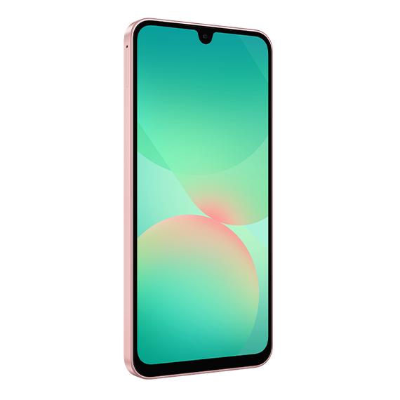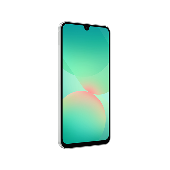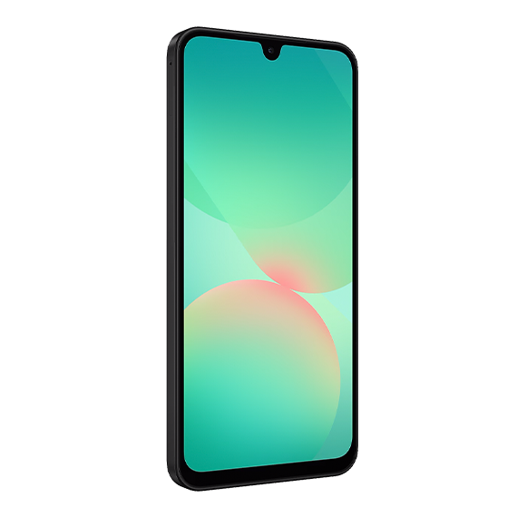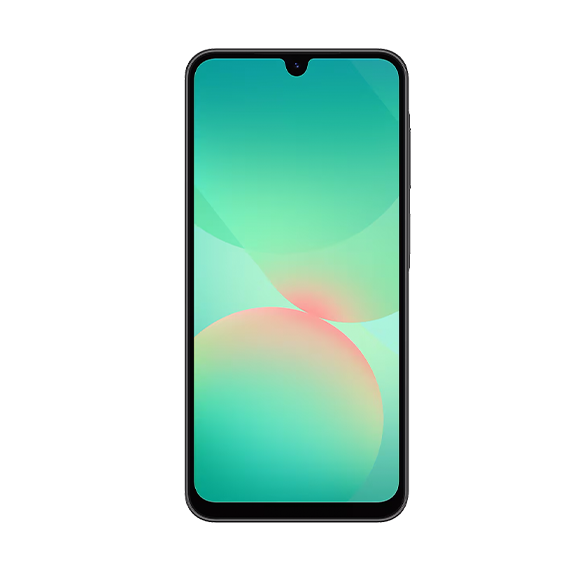 هاتف سامسونج A26 المتميز بشاشة كاملة Infinity-U قياس 6.7 بوصة بتقنية Super AMOLED، الشاشة عالية الدقة Full HD+ بسرعة تحديث 120 Hz وبعمق لوني حتى 16 مليون لون مع سطوع بقوة 1000 شمعة بالمتر المربع وتصميم أنيق للكاميرات بوزن 200 غرام وبسماكة متميزة وقدرها 7.7 ملم، مع معالج ثماني النواة بسرعة 2.4 GHz بتقنية 5nm يدعم اتصالات الجيل الخامس 5G وذاكرة عشوائية الوصول (RAM) بسعة 6 او 8 جيجا بايت مع ميزة RAM Plus التي تعزز سعة الذاكرة وتزود الجهاز بذاكرة افتراضية موسعة (من خلال استخدام الذاكرة الداخلية للجهاز) تعمل على تعزيز أداء التطبيقات وتنفيذ تعدد المهام بسلاسة حيث يمكن ان تصل سعة ذاكرة RAM الى الضعف حسب الذاكرة الاصلية للجهاز.