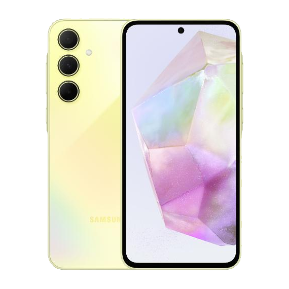 هاتف سامسونج A35 5G المتميز بشاشة كاملة Infinity-O قياس 6.6 بوصة بتقنية Super AMOLED الأفضل بالعالم مع معدل تحديث 120 هرتز، الشاشة عالية الدقة FHD+ بعمق لوني حتى 16 مليون لون مع سطوع بقوة 1000 شمعة للمتر المربع وتحمل طبقة Corning Gorilla Glass Victus+ المتينة والحديثة، وتحسّن خاصية Vision Booster إعدادات شاشة العرض لديك، ما يتيح عناصر مرئية بالغة الوضوح حتى تحت ضوء الشمس، ويحمل الجهاز تصميم كلاسيكي أنيق يتسم بالفخامة من الزجاج بوزن 209 غرام، مع معالج ثماني النواة بسرعة 2.4 GHz بتقنية 5 nm يدعم اتصالات الجيل الخامس 5G وذاكرة عشوائية الوصول (RAM) بسعة 6 او 8 جيجا بايت.