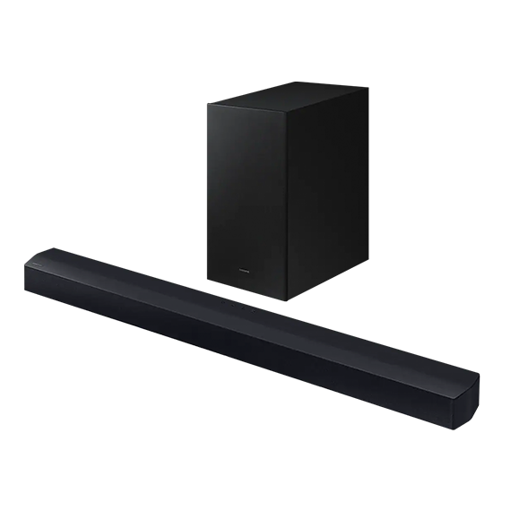 أضف مكبرات الصوت الخلفية اللاسلكية إلى جهاز الصوت لديك وحوِّله إلى نظام صوت محيطي ليمنحك متعة تجربة سينمائية خارقة. (تُباع مجموعة السماعات الخلفية اللاسلكية من سامسونج بشكل منفصل)